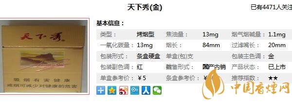 以上內(nèi)容是由香煙網(wǎng)小編為大家介紹的關(guān)于,天下秀香煙價格多少以及最貴的天下秀香煙價格表圖相關(guān)的信息,想要了解更多有關(guān)信息詳情請點擊:黃金龍香煙圖片價格大全。