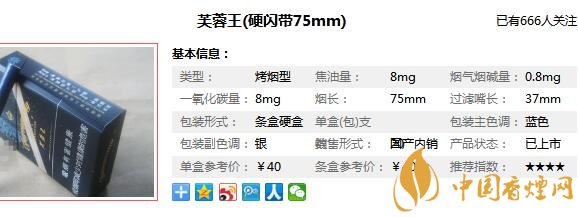 以上內(nèi)容是由香煙網(wǎng)小編收集以及整理的關(guān)于,芙蓉王硬閃帶75mm多少錢一包以及芙蓉王硬閃帶75mm價格相關(guān)的信息,想要了解更多相關(guān)信息請點(diǎn)擊:芙蓉王爆珠煙多少錢。