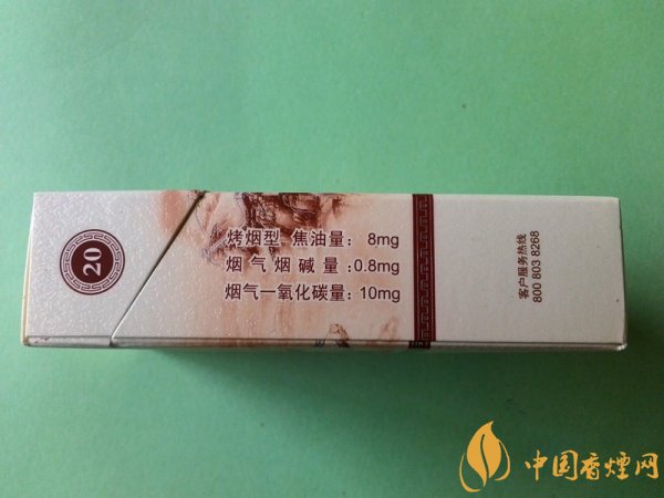 | 類型 :烤煙型 | 焦油量 :8mg | 煙氣煙堿量 :0.8mg | 一氧化碳量 :10mg |