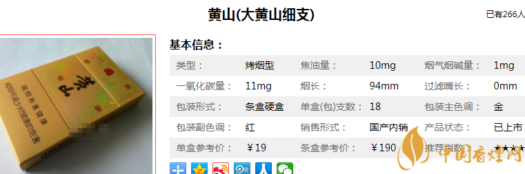 以上就是香煙網(wǎng)小編為大家整理介紹的關(guān)于黃山黃山細煙價格表和圖片,更多了解點擊:黃山10--20元的煙哪個好抽排行