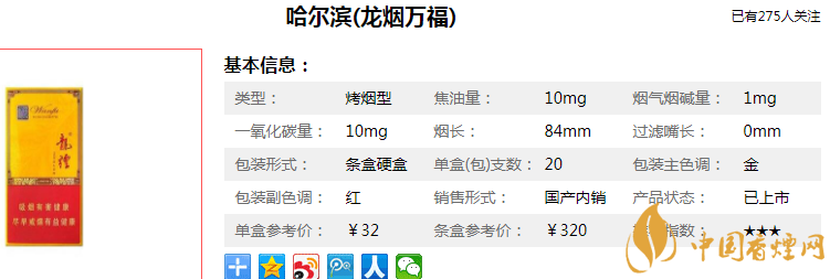 這就是"龍煙家族"幾個(gè)快樂的小兄弟,滿足龍江煙草消費(fèi)者的各種需求。以上就是香煙網(wǎng)小編為大家整理介紹的關(guān)于哈爾濱龍煙多少錢一包/條以及哈爾濱龍煙(系列)價(jià)格表相關(guān)信息,更多了解點(diǎn)擊:東北特產(chǎn)煙有什么 東北人喜歡抽什么煙(不止東三省代表煙)