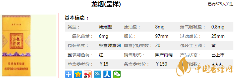 作為一款零售價(jià)格150元/條的細(xì)支卷煙,龍煙(呈祥細(xì)支)所用配方與哈爾濱龍煙(系列)價(jià)格表零售價(jià)550元/條的“龍煙(祥和)”以及零售價(jià)320元/條的龍煙(萬福)相當(dāng)。