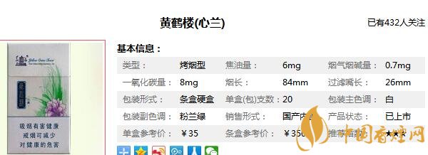 這款黃鶴樓心蘭香煙,給人的感覺非常好,可以說在國產(chǎn)香煙中,能有如此氣質(zhì)的香煙產(chǎn)品,只有這一種,如此漂亮的煙盒,印刷精美絕倫,仿佛一個慧心蘭質(zhì)的領(lǐng)家女孩,那么在介紹黃鶴樓心蘭價格圖片之前,先來看看黃鶴樓心蘭多少錢一盒,這款香煙的價格為35元/包。