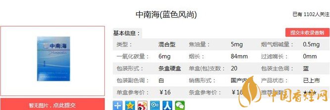 以上便是由香煙網(wǎng)小編為大家介紹的關(guān)于中南海藍(lán)色風(fēng)尚口感測評 中國第一支低危害卷煙的相關(guān)信息,想要了解更多有關(guān)內(nèi)容請點擊:中南海祥和壹叁貳價格及參數(shù) 致力于改善喉部舒適性