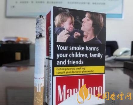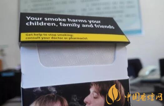 煙盒左右側(cè)面各印有黑框樣式的警示語(yǔ)句,也是后期歐盟版本萬(wàn)寶路的煙盒包裝特點(diǎn)。