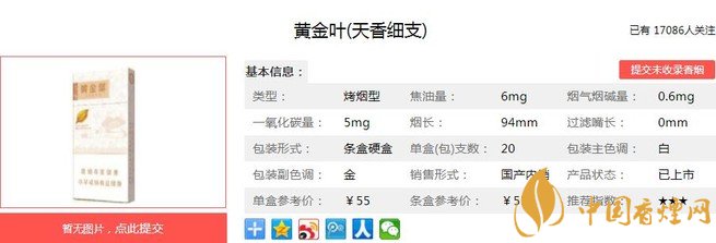 黃金葉天香細(xì)支類別為“高一類A(細(xì)支)潛力規(guī)格”,烤煙類型。外包裝沿襲天葉低調(diào)奢華的品系風(fēng)格,一如既往的黃金標(biāo)準(zhǔn),一絲不茍的手捻精神,和大小天葉系列一脈相承,據(jù)香煙網(wǎng)小編市場調(diào)查它的零售參考價為55元/包。