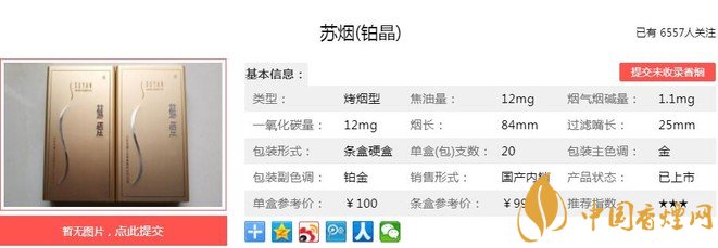 以上便是由香煙網(wǎng)小編為大家介紹的關(guān)于蘇煙鉑晶好抽嗎 蘇煙鉑晶價(jià)格及參數(shù)介紹的相關(guān)信息,想要了解更多有關(guān)內(nèi)容請(qǐng)點(diǎn)擊:蘇煙軟金砂C多少錢(qián)一包 蘇煙軟金砂C口感及參數(shù)介紹