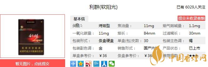 為了保證卷煙的香味品質(zhì),通過對(duì)所有倉儲(chǔ)煙葉中的高檔原料進(jìn)行分析化驗(yàn)和內(nèi)在品質(zhì)評(píng)定,選擇國(guó)內(nèi)外香氣足、煙堿適中、焦油含量低的優(yōu)質(zhì)煙葉,精心配比,在化學(xué)成份比例協(xié)調(diào)的基礎(chǔ)上,保證其突出的香氣風(fēng)格和特征。經(jīng)測(cè)定,焦油和尼古丁的比值保持在10∶1左右的合理范圍,且焦油量進(jìn)一步降低,煙氣更加柔和細(xì)膩。經(jīng)香煙網(wǎng)小編市場(chǎng)調(diào)查利群軟陽光售價(jià)為36元/包。