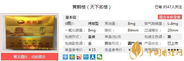 黃鶴樓天下名樓煙支長(zhǎng)84mm,屬于細(xì)支煙,只唯細(xì),不唯長(zhǎng),這似乎在淡化細(xì)支煙的“女士煙”身份標(biāo)簽,讓消費(fèi)者不把黃鶴樓天下名樓當(dāng)成“女士煙”來看待。下面我們一起來看黃鶴樓天下名樓的參數(shù)信息:焦油量:8mg 煙堿量:0.8mg 一氧化碳量:8mg