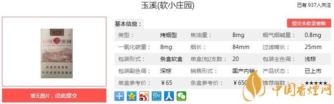 重點(diǎn)突出煙香的自然優(yōu)雅感,豐富細(xì)膩的香氣質(zhì)感,強(qiáng)調(diào)煙氣醇和濕潤(rùn)感和口感舒適性;莊園清香、清新自然,優(yōu)雅飄逸,柔綿溫潤(rùn),愉悅清新,彰顯獨(dú)具特色煙草本香。經(jīng)香煙網(wǎng)小編市場(chǎng)調(diào)查玉溪軟小莊園售價(jià)為65元/包。