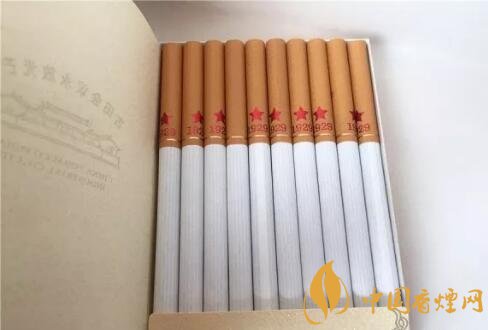 側(cè)開式煙盒設(shè)計,煙盒蓋內(nèi)部是紅色并印著金色五角星和1929,煙支被一張很具有復(fù)古色彩的紙張覆蓋著,上面有八個大字“古田會議永放光芒”,給人一種看黨章的感覺,設(shè)計簡約而不簡單。經(jīng)香煙網(wǎng)小編市場調(diào)查古田金中支售價為50元/包。