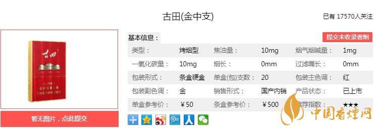 以上便是由香煙網(wǎng)小編為大家介紹的關(guān)于古田金中支好抽嗎 古田金中支價格及口感介紹的相關(guān)信息,想要了解更多有關(guān)內(nèi)容請點擊:黃鶴樓軟紅珍品價格 黃鶴樓軟紅珍品口感分析