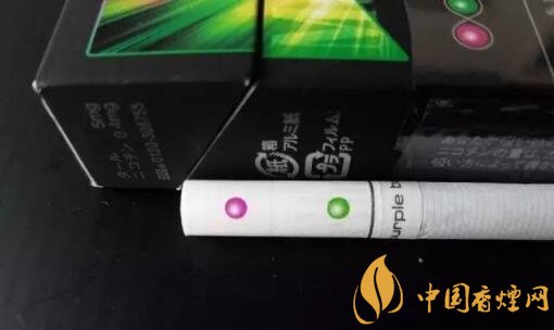 拿出一支香煙仔細(xì)端詳,煙支整體顏色很素雅,過(guò)濾嘴上的兩顆爆珠紫色的藍(lán)莓珠在靠尾端一點(diǎn),綠色的薄荷珠在濾嘴的另一端,一排降焦線(xiàn)相當(dāng)明顯,在不用強(qiáng)光看的情況下都清晰可見(jiàn)。