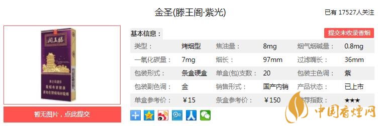 以上便是由香煙網(wǎng)小編為大家介紹的關(guān)于金圣滕王閣紫光好抽嗎 金圣滕王閣紫光價(jià)格及口感分析的相關(guān)信息,想要了解更多有關(guān)內(nèi)容請(qǐng)點(diǎn)擊:白沙尚品藍(lán)多少錢一包 白沙尚品藍(lán)口感及參數(shù)介紹