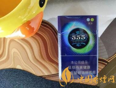 整體以藍(lán)色作基色調(diào),上半部有一個大號的圓形圖案,圖案中心是經(jīng)典的555標(biāo)識。圓形圖案的周圍均勻交叉著白色的細(xì)線,左上半部是淺藍(lán)色的光暈,右下半部是綠色的光暈,雙色雙爆,正對應(yīng)著右上角雙冰的圖樣標(biāo)識。煙盒背部與正面基本一致。“雙冰”的外部采用幻彩包裝,炫目多變,內(nèi)部為了提高保鮮性采用再封包裝。