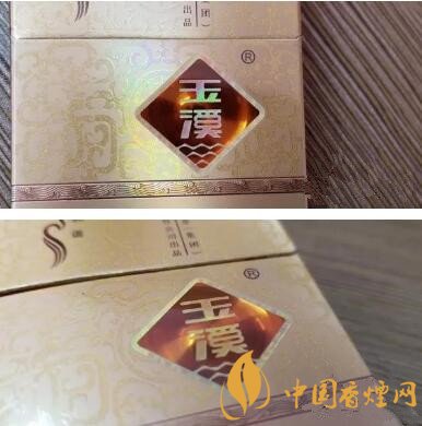 新版與老版正面其他的差別還有兩處:一是,右上角上蓋右側(cè),紅塔煙草(集團(tuán))有限責(zé)任公司的文字標(biāo)識(shí),老版是在豎條的右側(cè),新版則分列豎條的左右兩側(cè);二是,煙盒居中右側(cè)的“玉溪”Logo,老款是深棕色單色底色,新版則是是淺棕色帶激光同心圓反射底紋。和版面的紋飾配合比較協(xié)調(diào),也更靈動(dòng)一些。