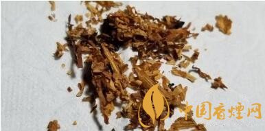 攤開煙絲,油潤(rùn)紅亮,棕黃色自然陳化的烤煙原片絲占據(jù)80%的比例,間雜有切寬稍細(xì)的深棕色煙絲,煙梗則切得極薄,一般長(zhǎng)度在6-7mm左右。用料比較厚道實(shí)在。