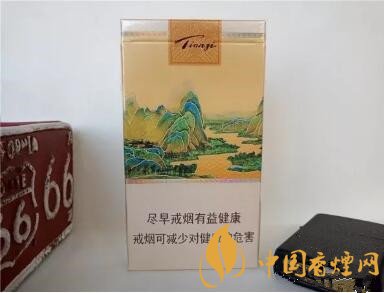 煙盒的背面則就是千里江山畫的另一面,上面是天子的拼音。在畫的下面則就是警示標語了。