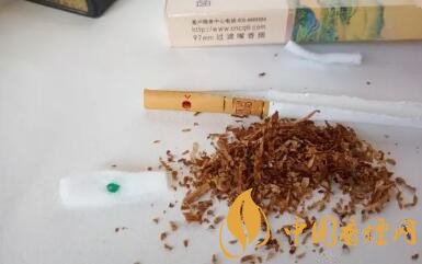 拆開一根煙,煙絲雖然非常的細小,但是大小還算規(guī)整。煙嘴內(nèi)的包裝是綠色的,聞起來有一股香味,淡淡的甜。