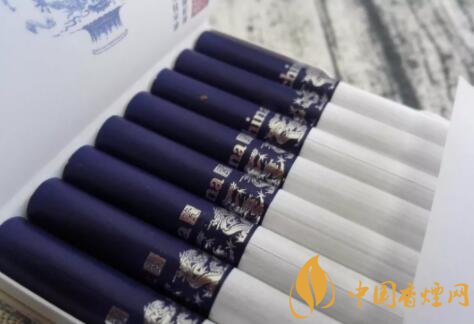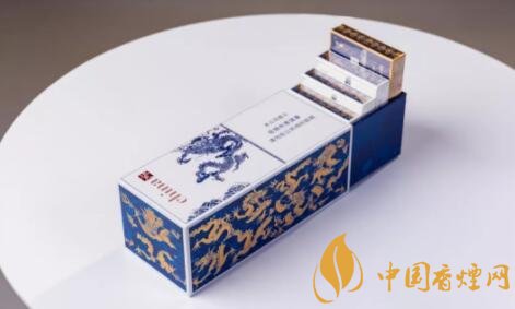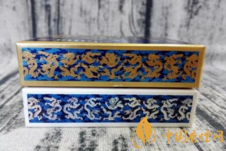 之所以此款china瓷為9+1系列,是指一條10盒香煙中,有一盒的包裝設(shè)計及口味,與余下九盒有所區(qū)別。圖片中深藍(lán)色澤包裝的,名為“龍王”。此種命名,乃是因十盒圖案皆為騰云祥龍而來。