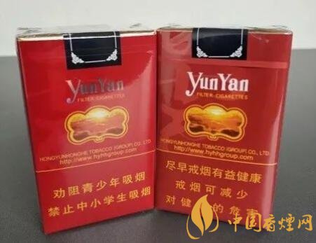 煙嘴上的文字皆一樣,從上往下是“雲(yún)煙”兩個(gè)字,成階梯形排列。在煙嘴表面的下部,各有一道圓箍,顏色與煙盒正面的logo的顏色相呼應(yīng)。
