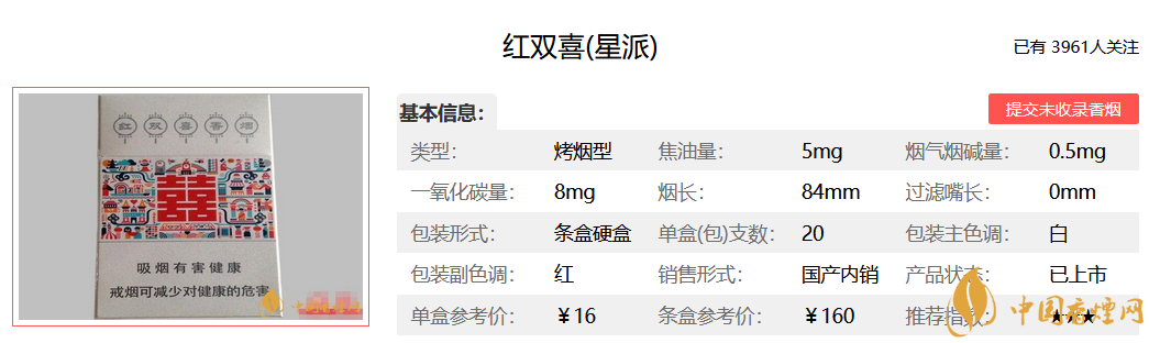 紅雙喜(星派)為英式烤煙,煙氣細膩柔和、香氣量充足,低害健康。紅雙喜(硬星派)在紅雙喜香煙中因味道醇厚深得各地煙民喜愛,這款上海紅雙喜香煙價格也接地氣近大眾。感覺煙香略少,煙氣較單薄,木質(zhì)氣略顯露,滿足感太少,可以說是戒煙的好選擇。