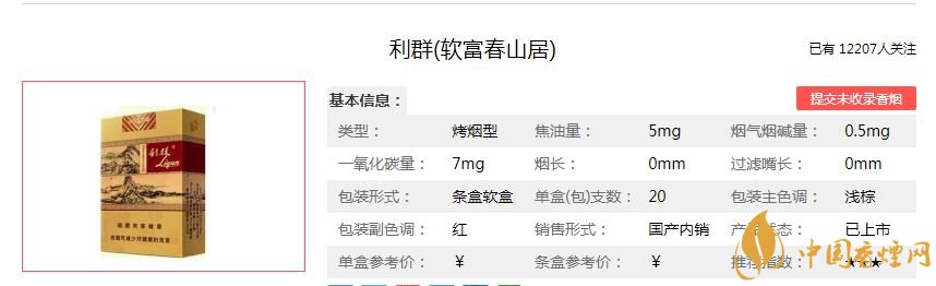 煙葉資源,秉承純煙葉打造,不添加任何香精香料,“”有“純天然、低焦低害”、“華夏第一支”的美譽。包裝設計上,無論是外包裝上還是煙支圖案,利群(富春山居)都完美展現(xiàn)了傳統(tǒng)文化之美和人文氣息。以帶給目標消費人群“本色本香、自然純正”的高品質(zhì)品吸感受。目前利群(富春山居)主要有軟包和硬盒兩種規(guī)格,零售價格均超過5000元一條,雖然價格高昂,大多數(shù)煙民都抽不起。