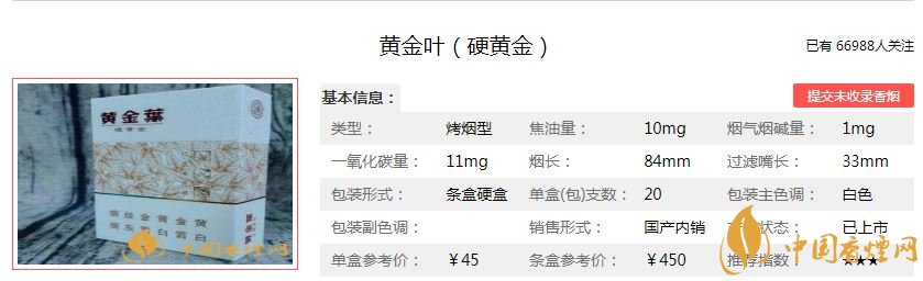 黃金葉系列香煙,前面小編已經(jīng)為大家介紹過很多款了。黃金葉香煙定位于高端香煙市場(chǎng),很受煙民歡迎。今天小編再為大家介紹一款黃金葉硬黃金。下面和小編一起看看這款黃金葉硬黃金的價(jià)格參數(shù)以及抽過的煙民對(duì)他的點(diǎn)評(píng)。