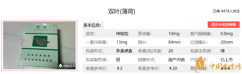 雙葉煙也是小時(shí)候抽過的比較經(jīng)典的一款煙,最后才知道它是一款薄荷煙,和我們抽過的其他煙有很大的區(qū)別,抽起來涼颼颼的。煙香保持和諧,口味清新、自然,通體舒暢。產(chǎn)品獨(dú)特的香味感受以及平易的價(jià)格,讓眾多消費(fèi)者對(duì)其情有獨(dú)鐘。
