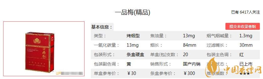 以上是香煙網小編為大家介紹的一品梅精品香煙的價格參數以及口感品鑒,希望為煙民們提供幫助。想了解更多香煙信息,請關注香煙網!