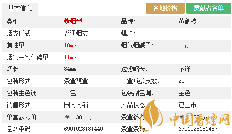 | 類型 :烤煙型 | 焦油量 :10mg | 煙氣煙堿量 :1mg | 一氧化碳量 :10mg |