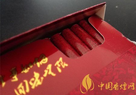 文中此款的包裝,相比于之前紅黃兩色,變?yōu)榱巳t色調(diào)。縱觀此版細支硬紅的色澤樣式,更像是已經(jīng)停產(chǎn)了的會堂品牌曾經(jīng)的高端之作盛世典藏的細支款,尤其是大紅底色中的牡丹花紋狀圖案的運用。