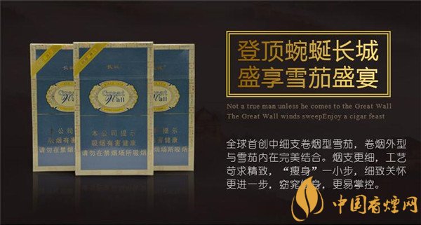 這款長城雪茄煙茄體長度94mm ,直徑7.88mm,環(huán)徑19.5mm,每個黃色的煙蒂上都印有藍色印花,其中兩條藍白色相間的環(huán)抱紋設(shè)計顯得長城醇雅薄荷煙很有層次感,綜黃色的茄身小巧精致卻又顯得纖細而挺拔。#p#副標(biāo)題#e#
