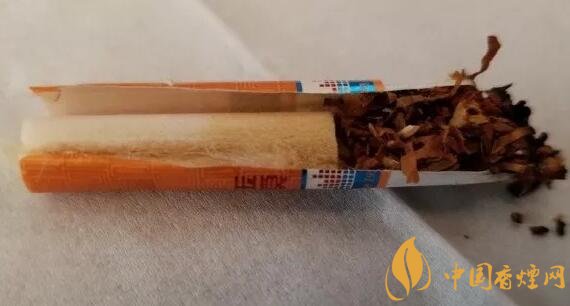 剖開(kāi)濾嘴,從絲束的顏色變化來(lái)看,降焦孔是開(kāi)在了絲束的前2/5部位。絲束的顏色變化均勻,降焦孔前段的顏色也不算太深,這個(gè)和添加了煙梗有比較大的關(guān)系,煙支自燃性良好,不用用力吸入,空氣的導(dǎo)入效果也不錯(cuò),煙氣的風(fēng)味均衡保持良好。