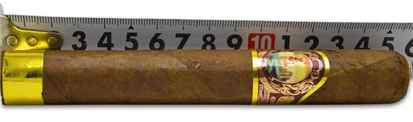 茄體結構精糧,呈現(xiàn)為深褐色,衣帽下端配有金色的印花雙標,茄體底端處配有純金色的標雙,雙重標環(huán)奠定了其尊貴的品質(zhì),使它看起來華麗無比。