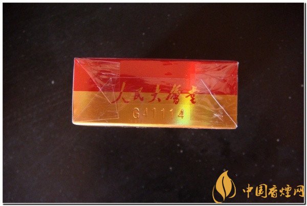 人民大會堂國典1959外包裝色調(diào)呈現(xiàn)為雙色系,一面為鮮紅色,另一面為金黃色。在正面的開盒的部位上有著金色的 “人民大會堂”字樣。煙盒的中間部分略上是“國典1959”,接著是人民大會堂圖案。煙盒的下部分是警示語言,“吸煙有害健康,盡早戒煙有益健康”。 該款香煙的煙盒背面是金黃色調(diào),上部分是也就是煙盒的左上角是“國典1959”,煙盒的正中是天安門禮燈圖案。