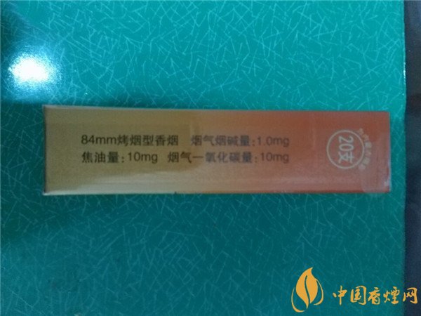 煙盒右側(cè)標(biāo)注著香煙的理化數(shù)值,標(biāo)注著過濾嘴香煙長84mm,1mg煙氣煙堿量,10mg焦油量,10mg煙氣一氧化碳量,印有主品牌單位名稱,數(shù)量指標(biāo)。