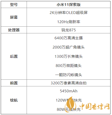 以上就是香煙網小編為大家介紹的小米11探索版參數(shù)配置詳情的相關內容了,希望對大家在選擇時有所幫助。了解更多實用手機相關咨詢,請關注香煙網。