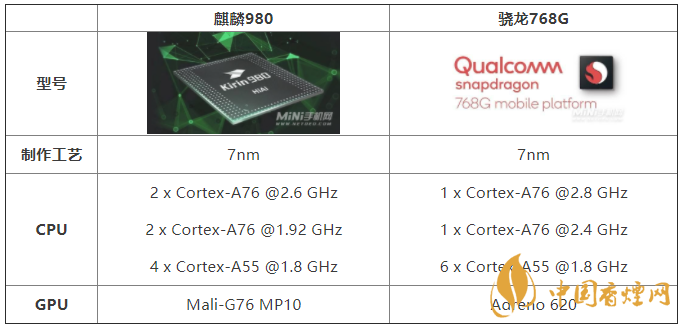 大家都知道,驍龍768g和麒麟980是兩款采用的7納米的制作工藝,在性能方面這兩款處理器的性能有相同的地方,那么這兩款芯片哪個更好?下面香煙網(wǎng)小編將對這兩款芯片的參數(shù)進(jìn)行介紹,感興趣的朋友一起來看看吧。