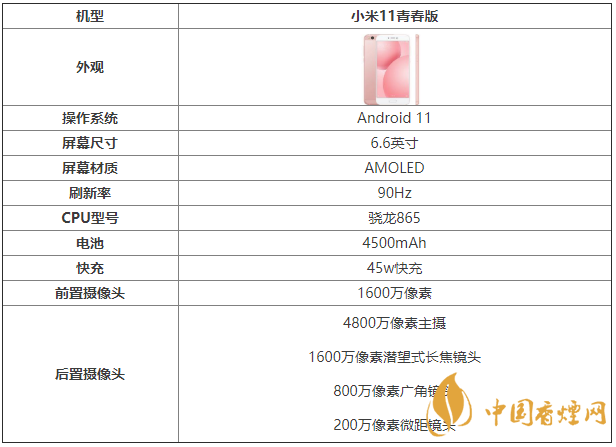 小米11青春版手機怎么樣?據(jù)爆料小米11青春版將會隨著小米11的發(fā)布而相繼上市,小米11青春版手機配置參數(shù)怎么樣?值不值得入手?香煙網(wǎng)小編也是在這里為大家?guī)砹诵∶?1青春版參數(shù)配置相關(guān)詳情,感興趣的朋友一起來看看吧!