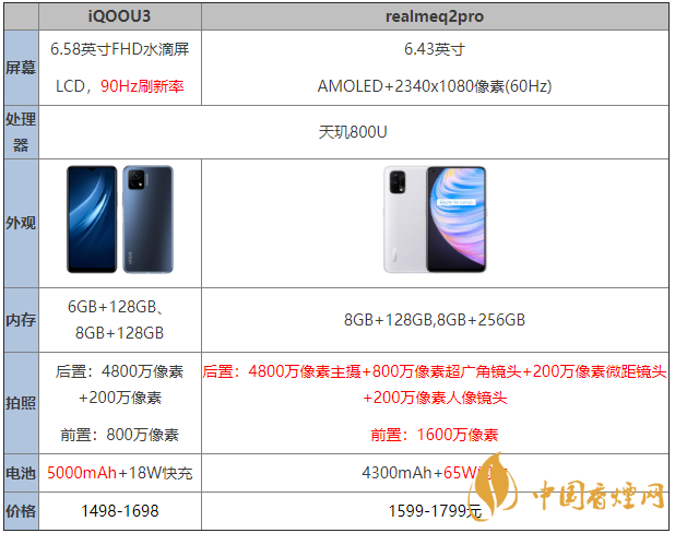 iQOOU3和realmeq2pro兩款手機都是有著相同的處理器并且其售價也是相差無幾的,那么在這兩款手機中到底是哪一款手機有著更加高的性價比呢?下面香煙網(wǎng)小編將對iQOOU3和realmeq2pro參數(shù)對比進行介紹,感興趣的朋友一起來看看吧!