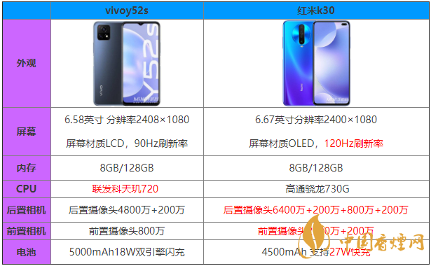 最近vivo發(fā)布了vivoy52s這款手機(jī),如果和極具性價(jià)比的紅米k30來比的話,哪一款手機(jī)更值得入手呢,目前這兩款手機(jī)在各大平臺(tái)均有銷售,下面香煙網(wǎng)小編就為大家?guī)韛ivoy52s和紅米k30?的詳細(xì)對比,感興趣的用戶一起來看看吧。