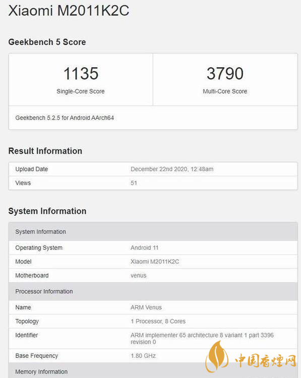 在小米官方宣布完小米11的發(fā)布時(shí)間之后,有博主對小米11再次開啟了新一輪的細(xì)節(jié)爆料。數(shù)據(jù)顯示,小米11主頻可達(dá) 1804 MHz,擁有12GB運(yùn)存,運(yùn)行安卓 11,跑分的最高一次成績是 1135 的單核得分以及多核 3790 的多核得分。