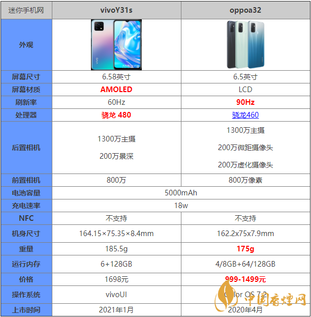 vivoY31s和oppoa32兩款手機(jī)可是分別來自vivo和OPPO的中低端機(jī)型,那么vivoY31s和oppoa32哪款手機(jī)更好?哪款手機(jī)更值得入手?接下來香煙網(wǎng)小編將對vivoY31s和oppoa32參數(shù)對比進(jìn)行介紹,感興趣的朋友一起來看看吧!