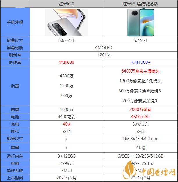 紅米K40是一款即將上市的新手機,那么這款手機和之前的紅米k30至尊紀念版相比較到底是有著什么樣子的差距呢?哪款手機更值得入手?接下來香煙網(wǎng)小編將對紅米K40和紅米k30至尊紀念版參數(shù)對比進行介紹,感興趣的朋友一起來看看吧!