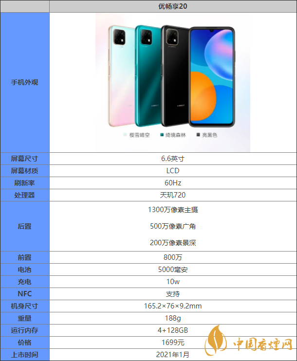 優(yōu)暢享20是聯(lián)通推出的最新的5G 手機,那么優(yōu)暢享20手機怎么樣?這款手機的具體的參數(shù)怎么樣?接下來香煙網(wǎng)小編為大家?guī)碜钚碌膬?yōu)暢享20參數(shù)配置詳情,感興趣的朋友快來看看吧。