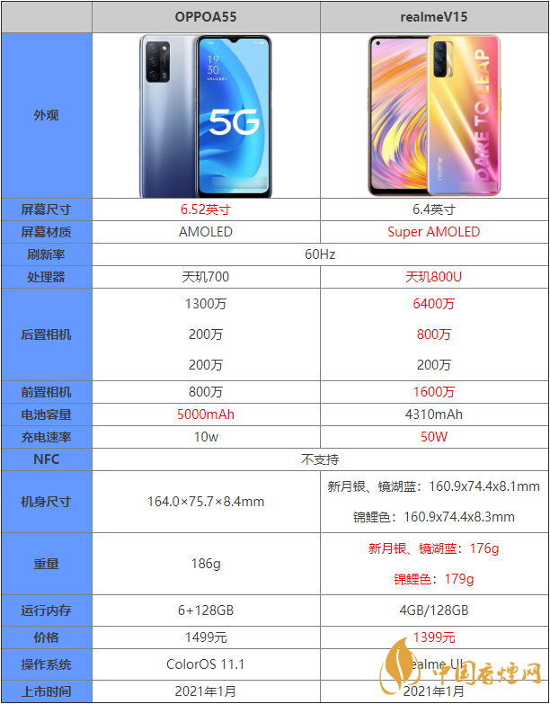 OPPOA55和realmeV15是近期新發(fā)的兩款中低端手機(jī),許多小伙伴對(duì)這兩款手機(jī)十分關(guān)注,那么OPPOA55和realmeV15有什么區(qū)別?哪款手機(jī)更值得入手?下面香煙網(wǎng)小編給大家?guī)鞳PPOA55和realmeV15詳細(xì)參數(shù)對(duì)比,感興趣的朋友一起來看看吧!