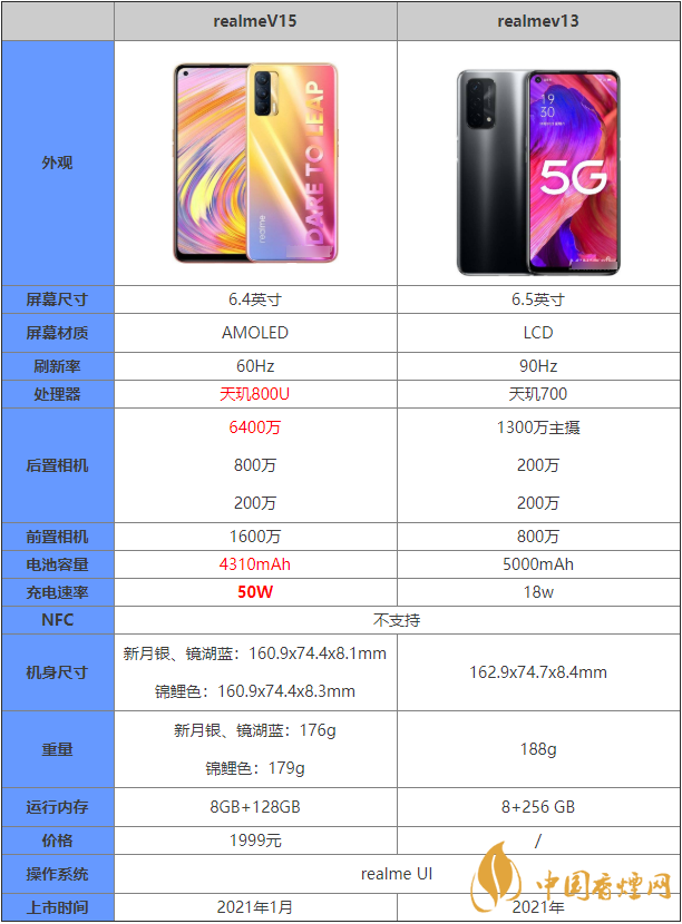 realmev13和realmev15是近期的新款手機(jī),許多小伙伴對(duì)這兩款手機(jī)十分關(guān)注,那么realmev13和realmev15這兩款手機(jī)有什么區(qū)別?哪款更值得入手?下面香煙網(wǎng)小編將對(duì)realmev13和realmev15參數(shù)對(duì)比進(jìn)行介紹一起來(lái)看看吧!