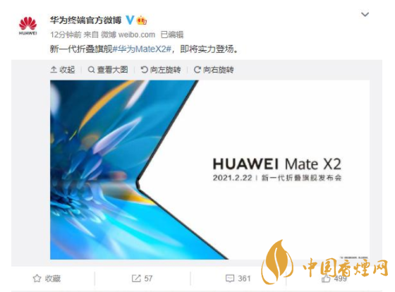 2月3日9點(diǎn)華為終端官方微博正式發(fā)布:新一代折疊旗艦華為MateX2,即將實(shí)力登場。根據(jù)官方的信息華為Mate X2將于2021年2月22日正式發(fā)布,不出意外華為Mate X2應(yīng)該是傳統(tǒng)意義上新年第一機(jī),因?yàn)槟且惶焓钦率弧,F(xiàn)在不得不佩服余承東的勇氣敢在春節(jié)之前公布華為Mate X2的發(fā)布日期,畢竟中間有一個(gè)春節(jié)七天長假這對(duì)于預(yù)熱機(jī)型是極為不利的。但華為就是華為向來不走尋常路,接下來估計(jì)官方會(huì)正式進(jìn)入華為Mate X2的預(yù)熱周期。