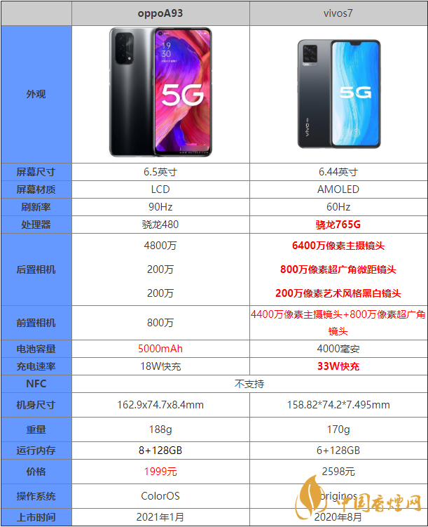 oppoa93和vivos7這兩款手機是大家十分關注的,許多朋友不知道要入手哪一款手機,那么oppoa93和vivos7這兩款手機的區(qū)別是什么?哪款手機的性價比更高?下面香煙網(wǎng)小編將為大家?guī)韔ppoa93和vivos7參數(shù)對比,感興趣的朋友一起來看看吧!